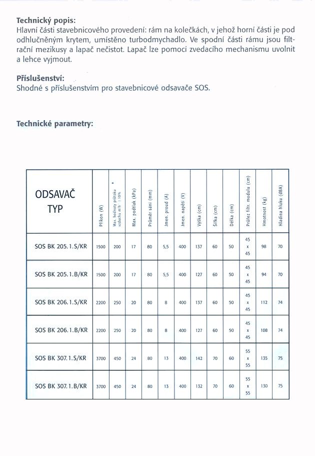 Univerzální stavebnicové odsavače SOS s pohonem komutátorovým motorem